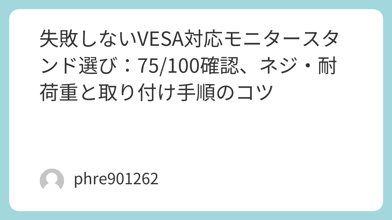 まず、VESAの穴の間隔。75か100か。これは仕様表でも取説でも出る。次に、ネジの太さと長さ。モニター側はM4が多いけれど、長さが合わないことがある。付属ネジが合わなかったときの保険として、 https://www.amazon.co.jp/s?k=%E3%82%A2%E3%82%A4%E3%83%8D%E3%83%83%E3%82%AF%E3%82%B9%20VESA75%20100%20M4%E3%82%B9%E3%83%9A%E3%83%BC%E3%82%B5%E3%83%BC%E3%83%8D%E3%82%B8%E3%82%BB%E3%83%83%E3%83%88%20PB-046&tag=opason-22 のような“VESA用ネジ+スペーサー”があると安心できる。