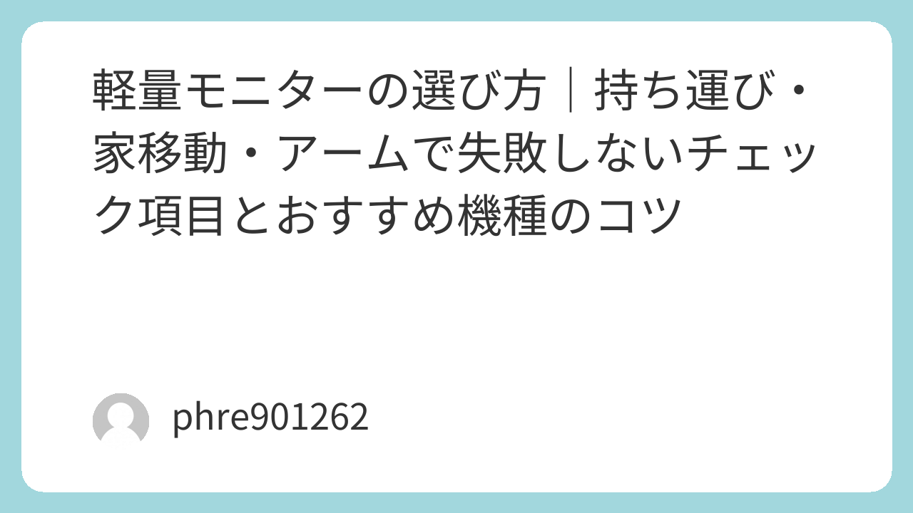 「モニター 軽量」で失敗する人は、チェック順が逆になってることが多い。軽さだけ先に決めると、あとから全部が崩れる。