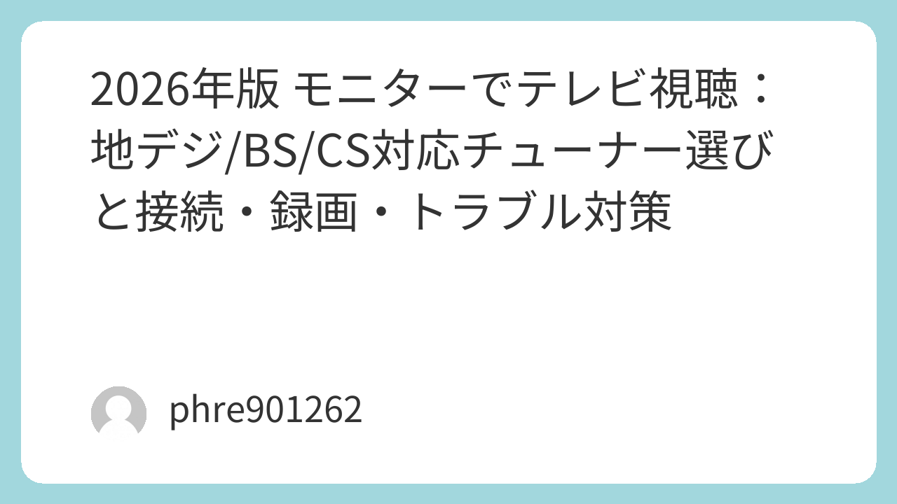2026年版 モニターでテレビ視聴:地デジ/BS/CS対応チューナー選びと接続・録画・トラブル対策