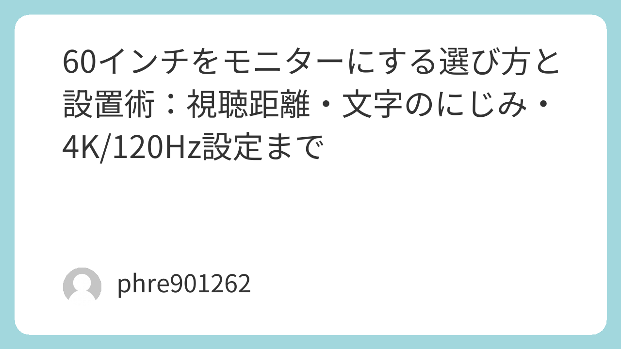 60インチをモニターにするのは、たしかに贅沢だ。でも、やり方さえ間違えなければ、作業の視界が広がって、映画がそのまま娯楽になる。大画面は生活を変える力がある。だからこそ、スペック表より先に「距離」と「文字」と「遅延」を押さえる。これだけ覚えておけば、60インチ級の世界で迷子になりにくい。