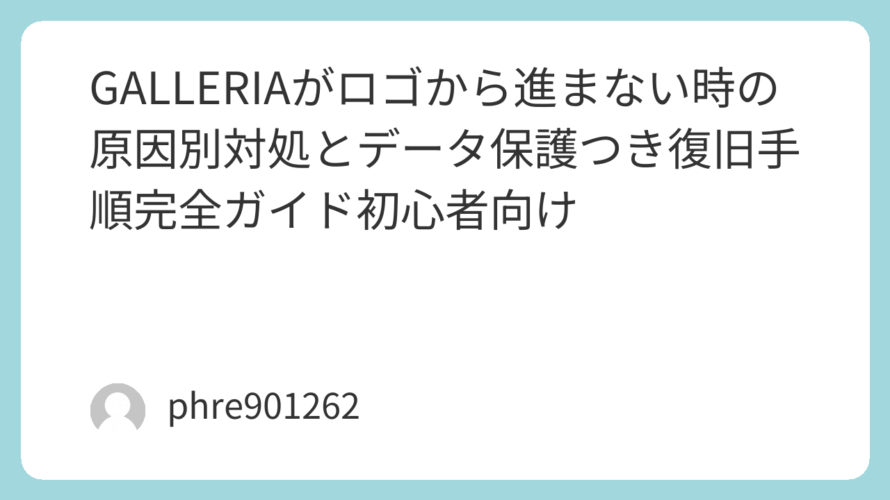 GALLERIAがロゴから進まない時の原因別対処とデータ保護つき復旧手順完全ガイド初心者向け