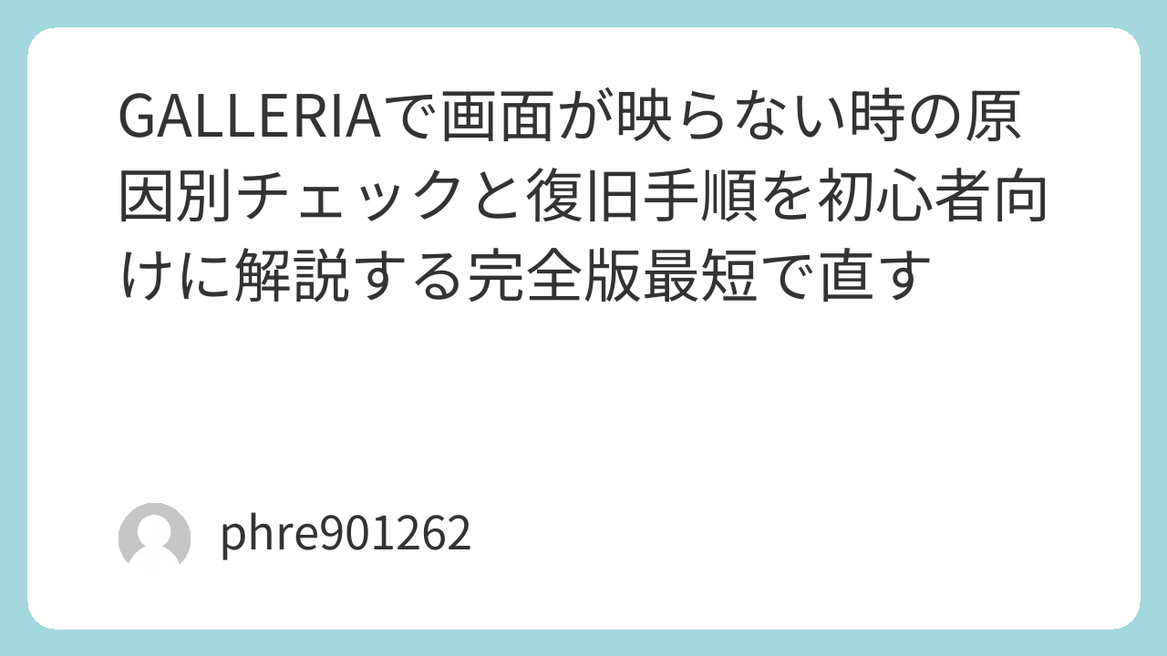 電源は入るのにモニターが真っ暗なまま。GALLERIAでこの症状が出たとき、焦って再起動を繰り返すほど状況が悪化することがあります。大切なのは「PCが映像を出していないのか」「映像は出ているのに表示先が違うのか」「Windowsが途中で止まっているのか」を順番に切り分けることです。ここでは、初心者でも迷いにくい復旧の流れを、原因別にまとめます。