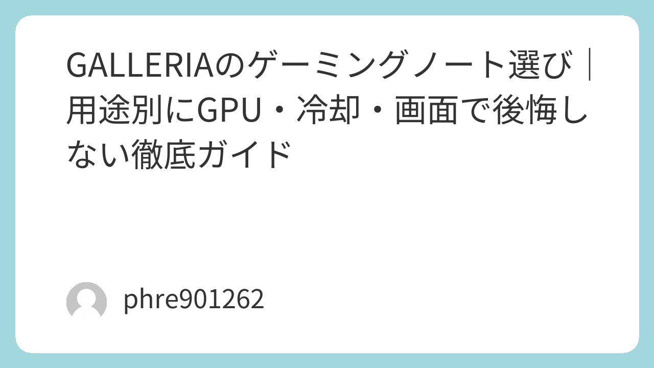 GALLERIAのゲーミングノート選び|用途別にGPU・冷却・画面で後悔しない徹底ガイド