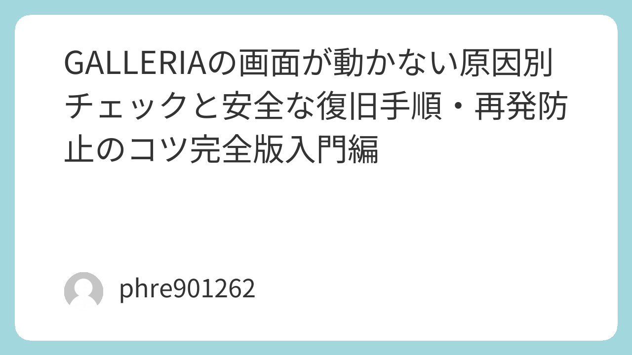最後に大事な注意点として、電源長押しの連発は避けたい。どうしても反応がなく、画面が完全停止していて安全な手段が尽きたと判断できたときだけ最終手段として使い、その後は必ず原因に当たりを付けて整えていく。切り分けの順番を守るほど、復旧は早まり、再発率も下げられる。GALLERIAの「画面が動かない」は怖く見えても、現象を分解していけば打てる手が多いので、今日からは慌てず一手ずつ進めていこう。
