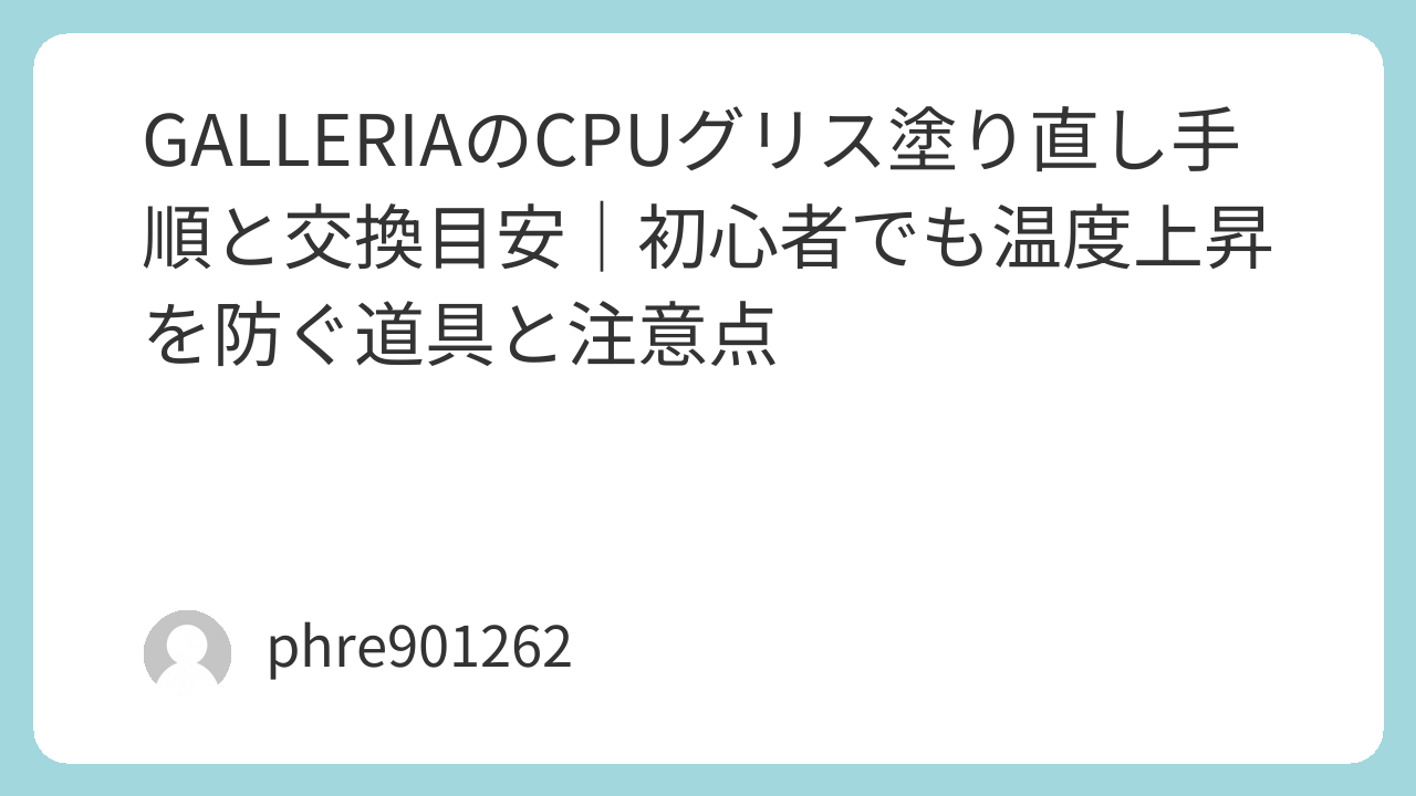 グリス塗り直しは「いま困っている熱・騒音」を現実的に改善できるメンテナンスだ。難しい作業に見えるが、準備を整え、ゆっくり手順を踏めば初心者でも成功率は上がる。まずは安全対策と拭き取りの道具を揃え、塗りやすいグリスを選び、丁寧に取り付け圧を揃える。これだけで、GALLERIAの“最近うるさい”は、意外なほどあっさり落ち着くことがある。