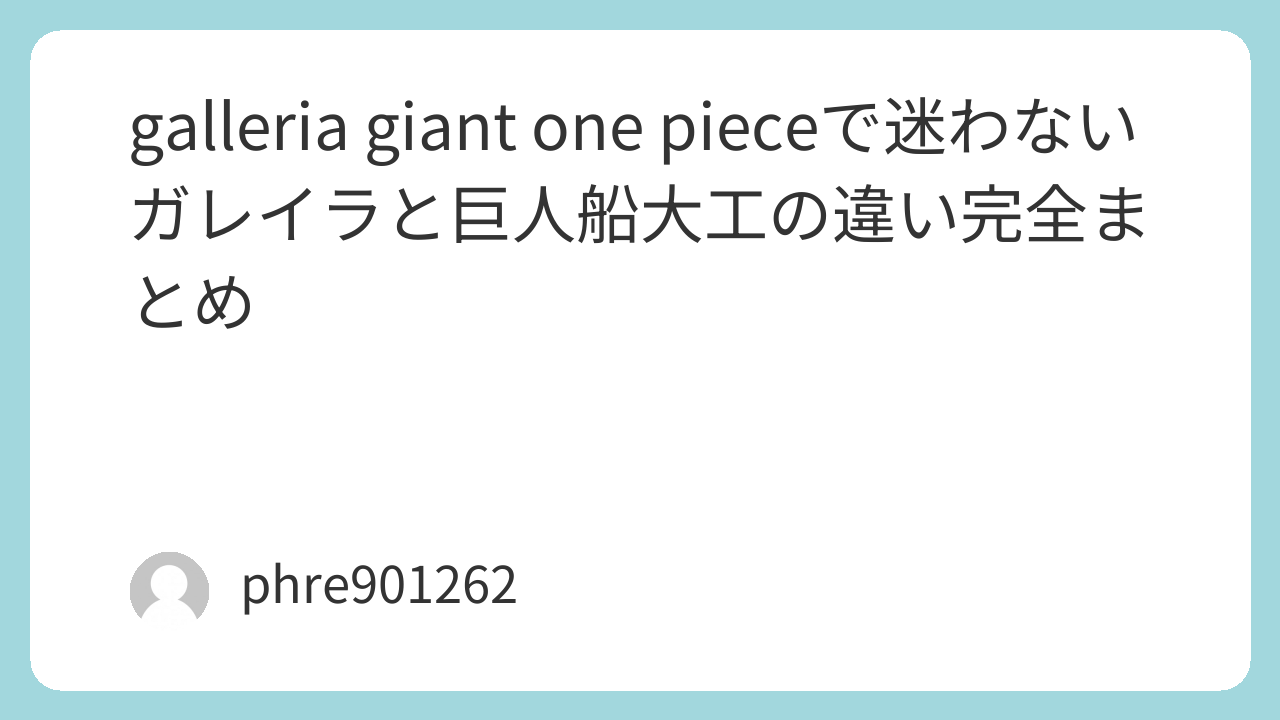 「galleria giant one piece」と検索して辿り着く最大の壁は、名前の似た要素が多すぎて、頭の中の記憶がごちゃっと混ざる点にある。ここを整理すると、知りたい中心は“巨人の船大工集団”として語られるガレイラ(大槌戦団)で、ウォーターセブンの造船会社ガレーラカンパニーとは別枠として捉えるのがいちばん早い。
