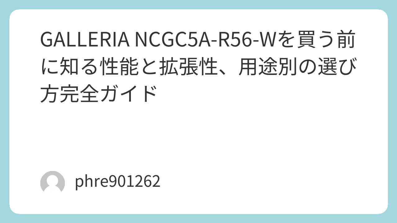 結論として、GALLERIA NCGC5A-R56-Wは「まずはフルHDで気持ちよく遊び、必要に応じてメモリとストレージで伸ばす」戦略と相性が良い一台になります。買う前に、無線が必要か、配信をどこまでやるか、設置スペースと周辺機器をどう整えるか、この3点を決めておけば、届いた瞬間から満足度の高い環境に仕上げられます。