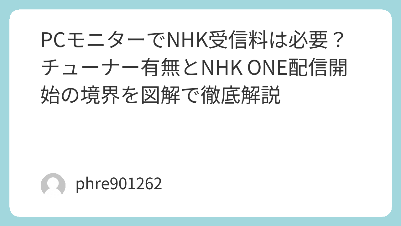 PCモニターでNHK受信料は必要?チューナー有無とNHK ONE配信開始の境界を図解で徹底解説