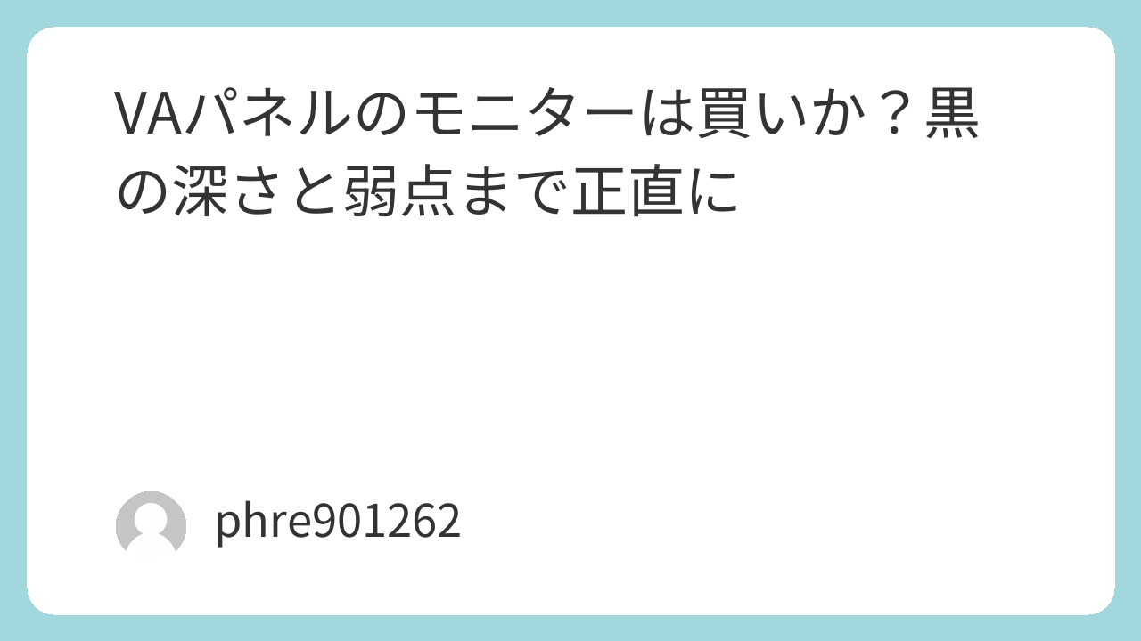 VAモニターは、黒の深さとコントラストで映像が気持ちよく見える。その一点だけでも、選ぶ理由になります。けれど、暗部の残像や視野角のクセが出ることもあるので、買うなら「暗い画面でスクロール」「暗いゲームで視点移動」を最初に試す。ここをやるだけで、VAでの失敗はかなり減ります。黒が好きなら、遠慮なくVAに寄せていい。合わなかったら、合わなかったでIPSに逃げればいいんです。