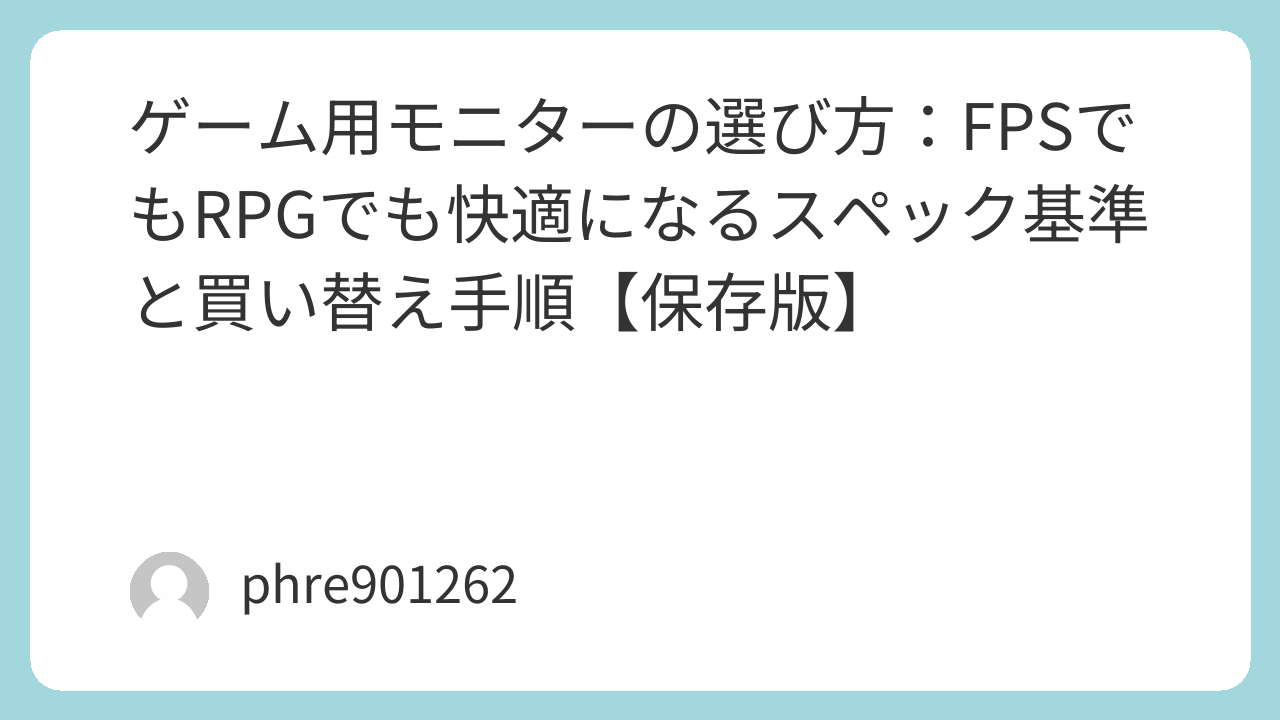 ゲーム用モニターの選び方:FPSでもRPGでも快適になるスペック基準と買い替え手順【保存版】