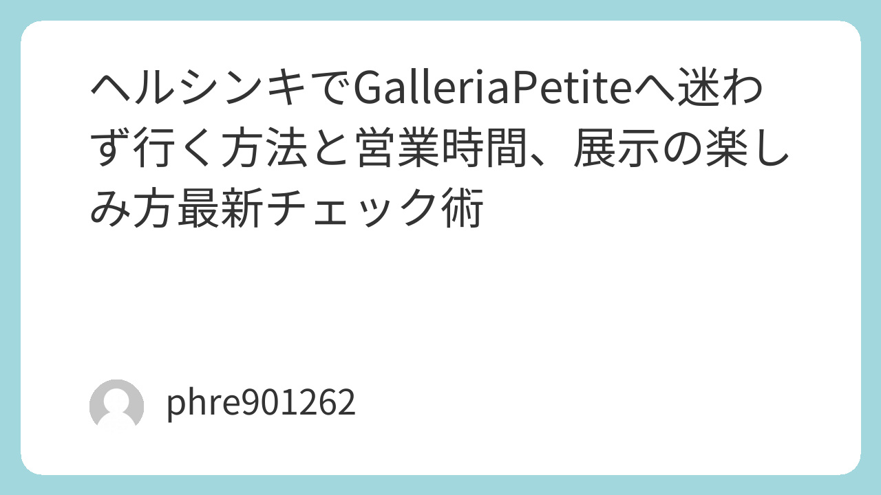行き方で迷いそうなら、目的地を“ギャラリー単体”ではなく「Petite Et Cherie(ショップ&ギャラリー)」として地図に入れておくのがコツです。Tapanilaエリアの散歩として組み立てると、到着してからも焦らずに済みます。(MyHelsinki) 現地での動き方はシンプルで、入ったら最初に展示全体を一周し、気になった作品だけ戻って鑑賞する流れが合います。静かな空間ほど“最初の一周”が効き、短時間でも満足感が上がりやすい印象です。