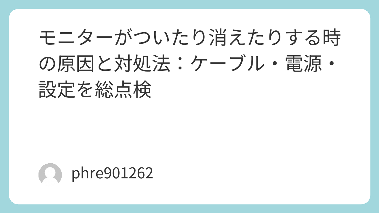 消える直前に「No Signal」や入力切替の表示が出るなら、映像信号が途切れている可能性が高い。逆に、電源ランプまで落ちる、もしくはモニターが再起動したような挙動なら電源側を疑う。ここがズレると、ずっと迷子になります。