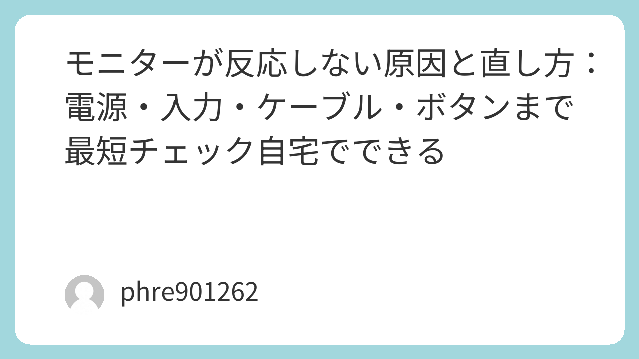 モニターが反応しないときは、派手な原因より「電源の取り回し」「入力のズレ」「変換の挟みすぎ」みたいな小さなズレが多い。だからこそ、ランプ→電源→入力→ケーブル→OS→ボタンの順で、淡々と確認するのがいちばん早い。焦りが出たら、いったん直結に戻す。それだけで空気が変わる。