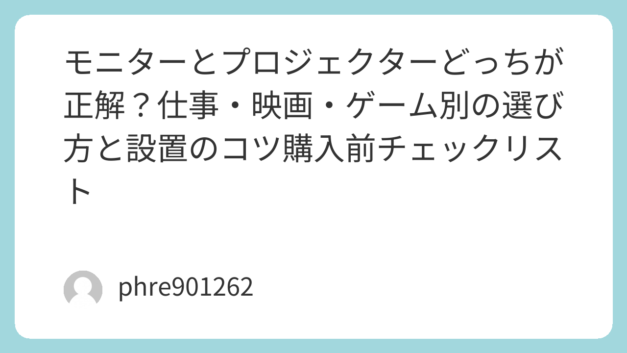 モニターとプロジェクターどっちが正解?仕事・映画・ゲーム別の選び方と設置のコツ購入前チェックリスト