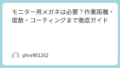 モニターの緑の線は、原因が一つじゃないぶん焦りやすい。でも切り分けは、入力→ケーブル→設定→別画面の順で進めれば詰まらない。ここまでやって残るなら、あなたの使い方が悪いという話ではなく、機材側のタイミングが来た可能性が高い。そこまで判断できた時点で、もう十分勝っている。