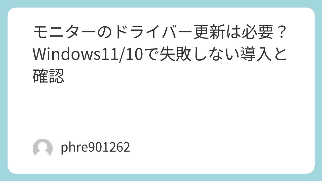 モニターのドライバー更新は必要?Windows11/10で失敗しない導入と確認