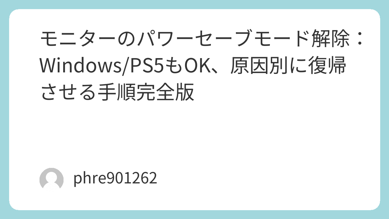 最後に、再発防止は地味な話が一番効く。ケーブルの抜けを防ぐだけで、パワーセーブモードとの遭遇率は目に見えて下がる。自分は配線を整えたつもりで、椅子のキャスターでケーブルを引っ掛けていたことがあった。あれ以来、ケーブルは固定する派になった。「ケーブルクリップ 配線固定」(https://www.amazon.co.jp/s?k=%E3%82%B1%E3%83%BC%E3%83%96%E3%83%AB%E3%82%AF%E3%83%AA%E3%83%83%E3%83%97%20%E9%85%8D%E7%B7%9A%E5%9B%BA%E5%AE%9A&tag=opason-22)で机裏に留めるだけでも違う。電源面では、モニターや周辺機器の電源をまとめて管理しているなら「雷ガード 電源タップ 個別スイッチ」(https://www.amazon.co.jp/s?k=%E9%9B%B7%E3%82%AC%E3%83%BC%E3%83%89%20%E9%9B%BB%E6%BA%90%E3%82%BF%E3%83%83%E3%83%97%20%E5%80%8B%E5%88%A5%E3%82%B9%E3%82%A4%E3%83%83%E3%83%81&tag=opason-22)みたいに安定したタップを使い、頻繁なオンオフ運用を避けるだけでも復帰が落ち着くことがある。