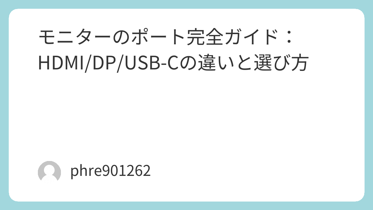 モニターのポート完全ガイド:HDMI/DP/USB-Cの違いと選び方