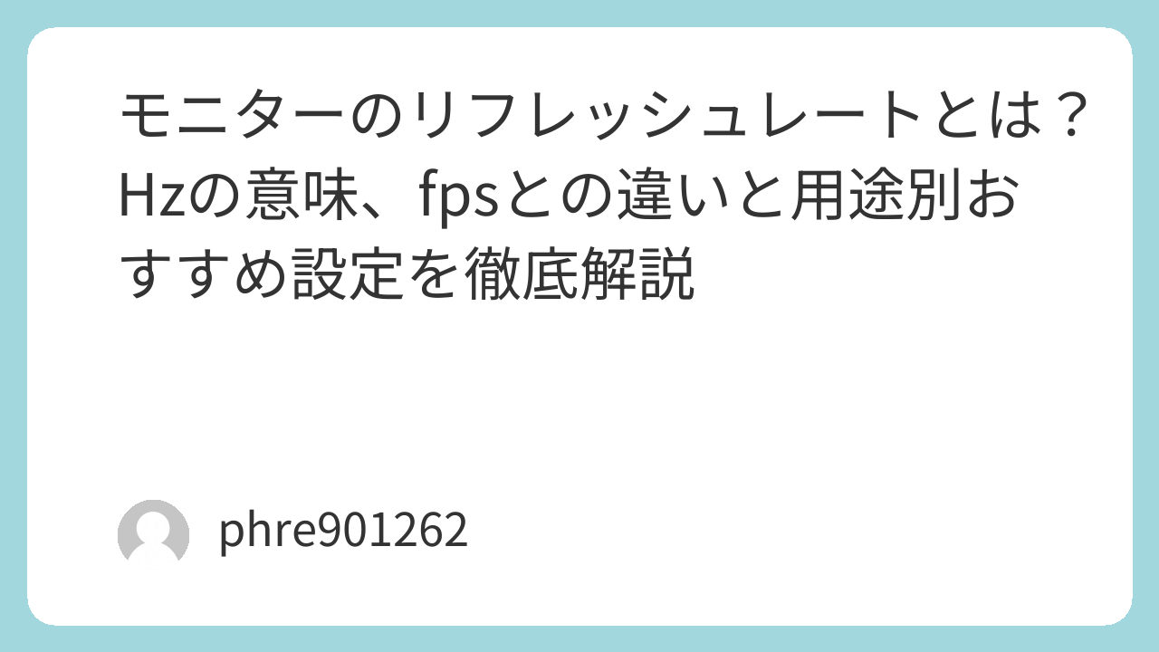 モニターのリフレッシュレートとは?Hzの意味、fpsとの違いと用途別おすすめ設定を徹底解説
