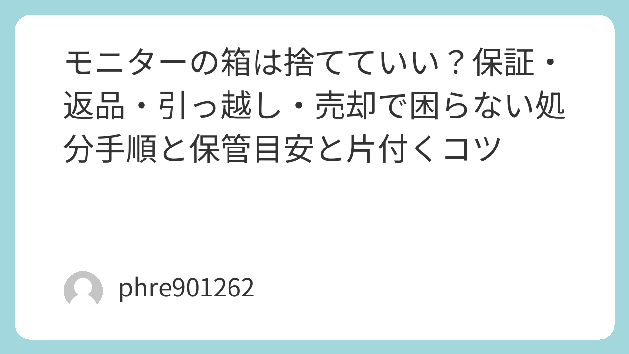 モニターの箱、正直じゃまです。押し入れの奥に立てかけたまま、存在だけが増えていく。結論から言うと、ほとんどの人は捨てて大丈夫。ただし「捨てる前に確認すること」と「箱がなくなった後の逃げ道」を押さえておくと、あとで焦りません。ここを外すと、修理発送や引っ越し前日に詰みます。
