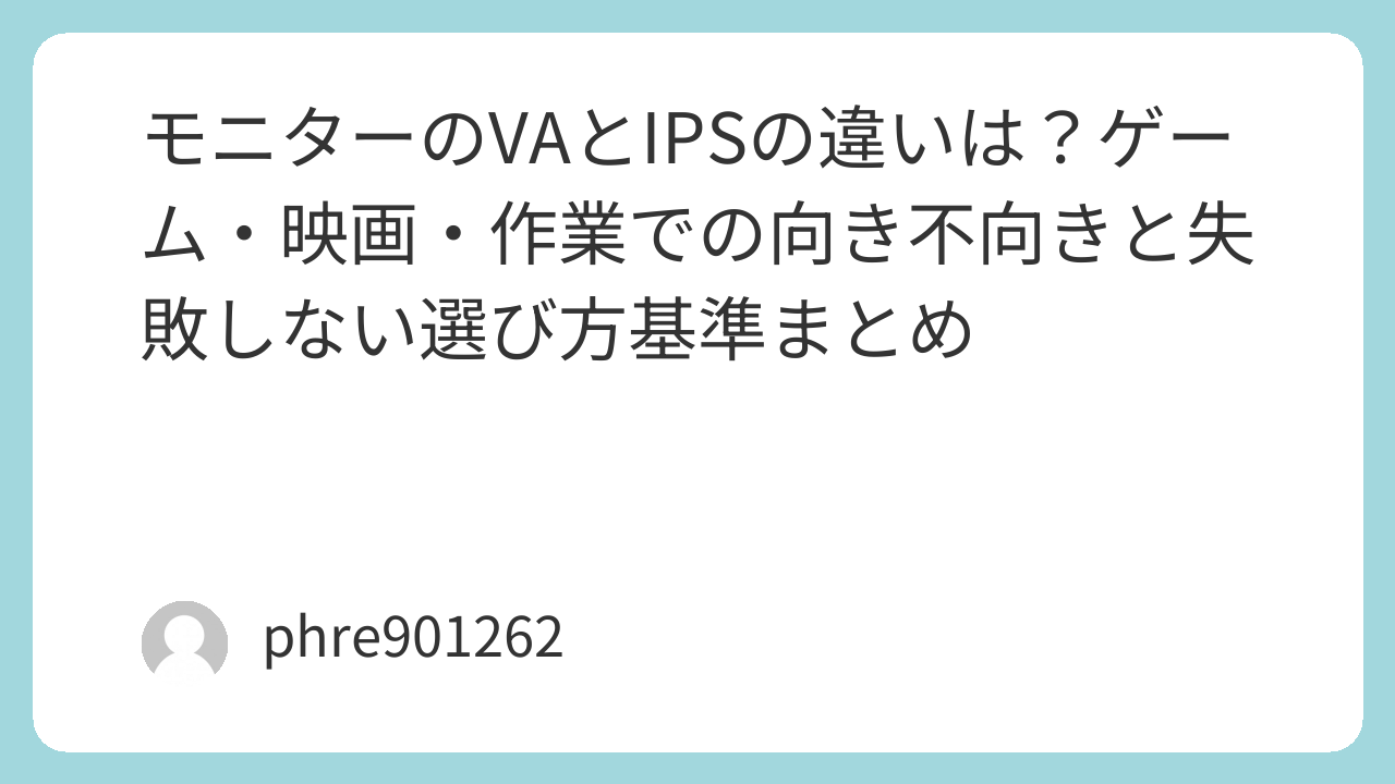 ここで一つ、買い物の失敗談を入れておく。以前、安いVAを買って「黒は最高!」って浮かれてたのに、ダークテーマでブラウザをスクロールした瞬間に違和感が出た。残像というより、黒いところが少し遅れてついてくる感じ。慣れる人は慣れる。でも自分は作業時間が長かったから、結局IPSに戻った。こういう“使い方の比率”が答えになる。映画2割、作業8割なら、黒の気持ちよさより安定感が勝つ。逆ならVAが刺さる。