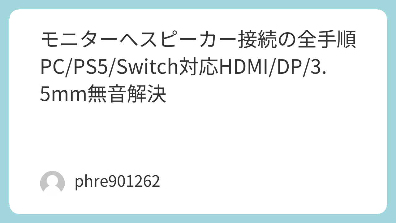 モニターへスピーカー接続の全手順PC/PS5/Switch対応HDMI/DP/3.5mm無音解決
