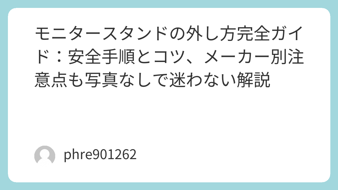 モニターのスタンドを外す作業って、やる前は簡単そうに見えるのに、いざ背面を覗くと「ボタンがない」「ネジが見えない」「外れそうで外れない」で詰まりがち。結論から言うと、力でねじ伏せるほど状況は悪化する。外し方は機種ごとに違うけれど、落ち着いて“方式”を見分ければ、だいたいは10分以内で終わる。