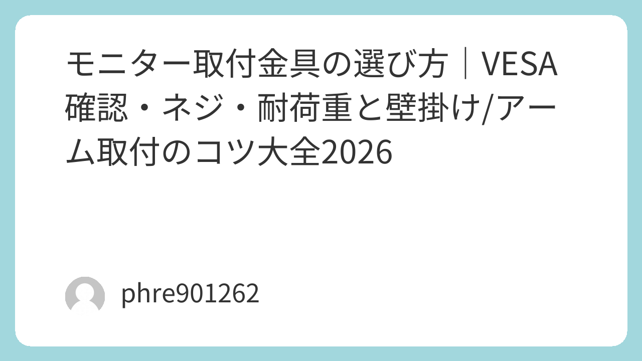 「モニター 取付金具」で迷っているなら、今日やることはこれだけ。まず背面のVESAを確認して、モニターの重量を見る。それから、机に付けるならアーム系で、安心と完成度を狙うならエルゴトロン LX デスクマウントアーム、重めならエルゴトロン HX モニターアーム。まず試すならAmazonベーシック モニターアーム シングルやNORTH BAYOU F80 モニターアーム。机が不安なら補強を忘れず、壁掛けは壁を見てから判断する。この順番を守るだけで、取付金具選びの失敗はかなり減る。