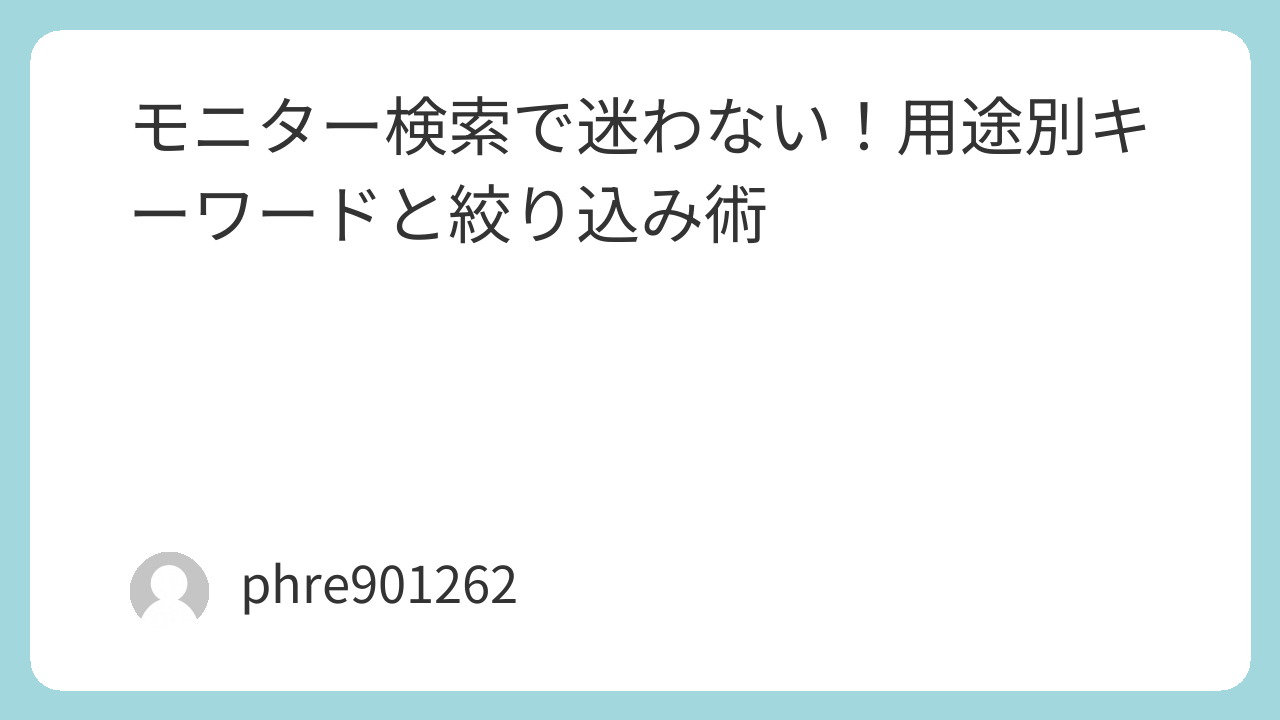 モニターを探したいだけなのに、「おすすめ」が無限に出てきて、気づけば候補が増えている。あれ、あるあるです。自分も最初は「モニター 検索」とだけ入れて、ランキング記事を何十ページも開いてしまい、結局なにも決まらない夜をやりました。そこで方針を変えました。検索は“才能”じゃなく“順番”で決まる。結論はこれです。用途→机→接続→パネル。この順に言葉を足していけば、検索結果はちゃんと自分向けに寄ってきます。