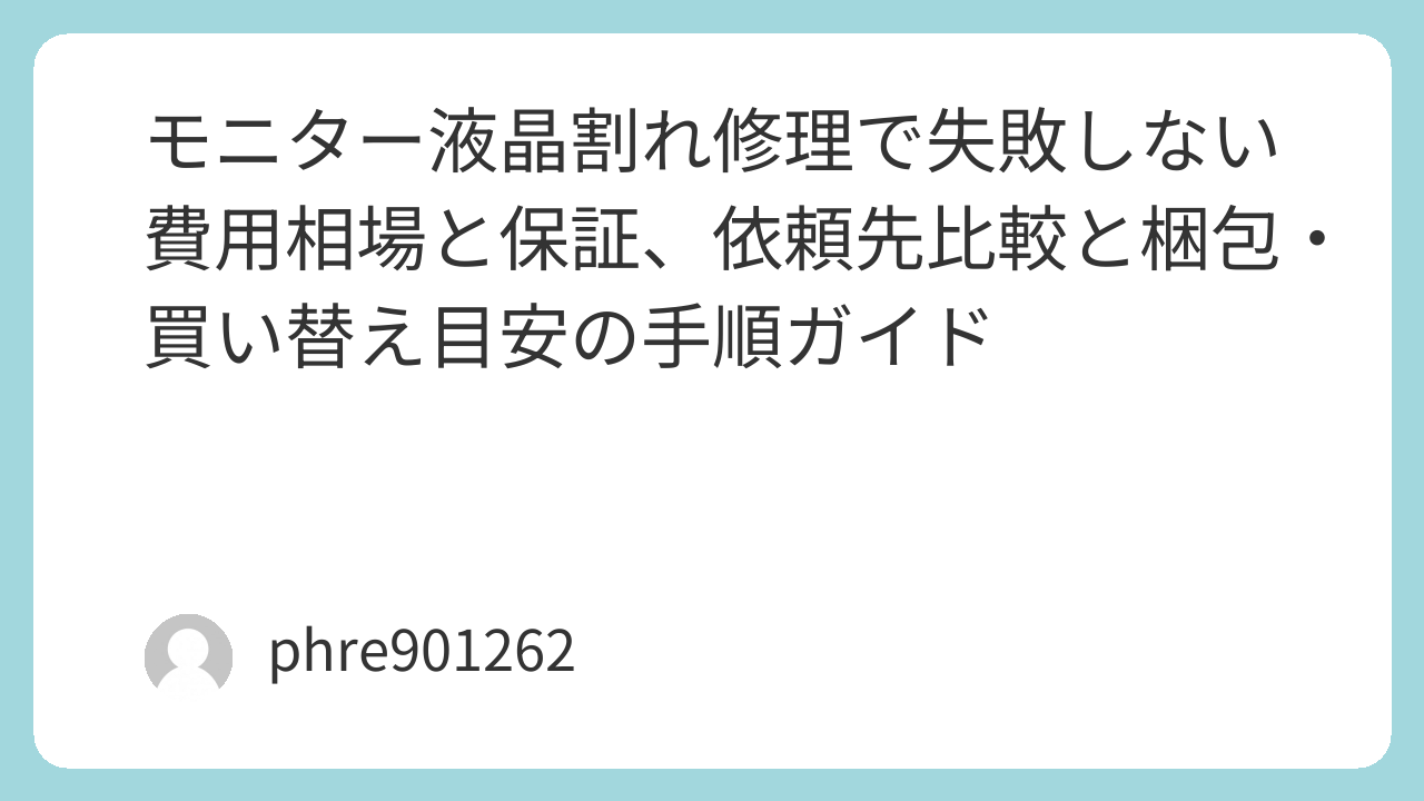 修理に出す時、いちばん怖いのは“割れが広がる配送事故”だ。箱がない人は、サイズに合う箱を用意するところから始まる。たとえば[モニター 梱包用 段ボール 27インチ](https://www.amazon.co.jp/s?k=%E3%83%A2%E3%83%8B%E3%82%BF%E3%83%BC%20%E6%A2%B1%E5%8C%85%E7%94%A8%20%E6%AE%B5%E3%83%9C%E3%83%BC%E3%83%AB%2027%E3%82%A4%E3%83%B3%E3%83%81&tag=opason-22)のように“モニター向け”で探すと収まりがいい。