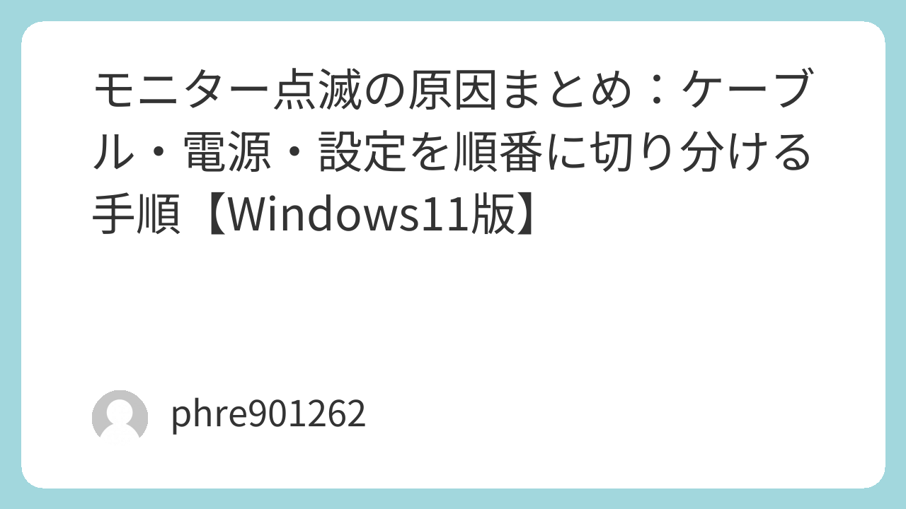 モニター点滅の原因まとめ:ケーブル・電源・設定を順番に切り分ける手順【Windows11版】