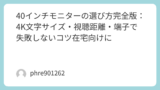 やるべきは表示スケール(拡大率)の調整。解像度はネイティブのまま、スケールで見やすさを作る。ここが決まると、モニター画像の“なんかモヤっとする”がスッと消えることが多い。