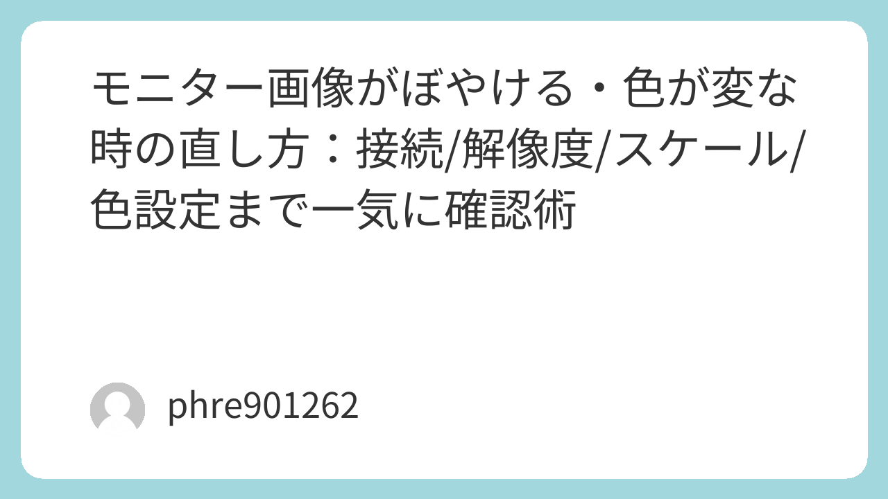 モニター画像がぼやける・色が変な時の直し方:接続/解像度/スケール/色設定まで一気に確認術