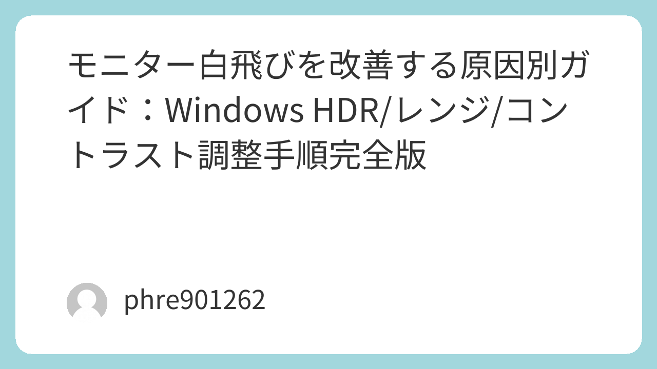 それでも白飛びが残るなら、HDRを疑う。症状が分かりやすいのは、HDRをONにした瞬間だけ全体が白っぽくなったり、YouTubeのHDR動画だけ破綻したり、ゲームだけ妙に白が飛ぶパターン。これ、モニターが悪いというより、OS側のトーンマッピングが合っていないケースがある。