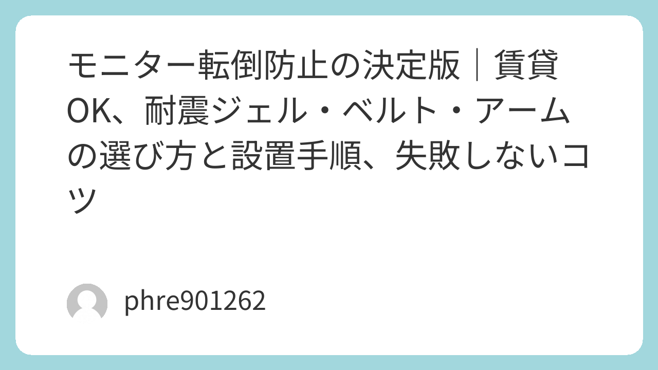 モニター転倒防止の決定版|賃貸OK、耐震ジェル・ベルト・アームの選び方と設置手順、失敗しないコツ