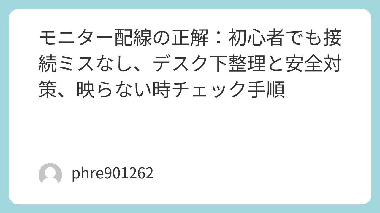 モニター配線の正解:初心者でも接続ミスなし、デスク下整理と安全対策、映らない時チェック手順