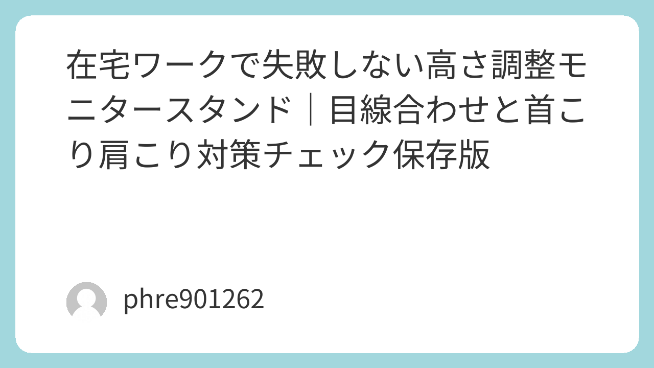 高さ調整は、数値より体感が正直です。だからこそ、合わせ方が雑だと「結局変わらない」になりやすい。椅子を整え、手元を整え、モニターを上端基準で合わせる。そこまでやって初めて、スタンドの価値が出ます。今日の首と肩を守る投資として、まずは“いま何cm足りないか”を測るところから始めてみてください。