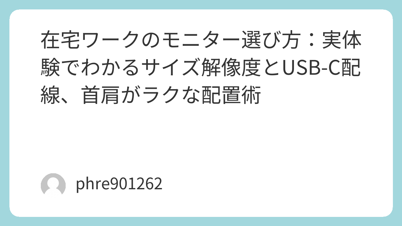 サイズや解像度の前に「置いたときに目線が合うか」「腕やキーボードの場所が残るか」を想像してみてください。ここがハマれば、モニター在宅ワークはかなり快適になります。仕事が終わったあとも、体が残ります。