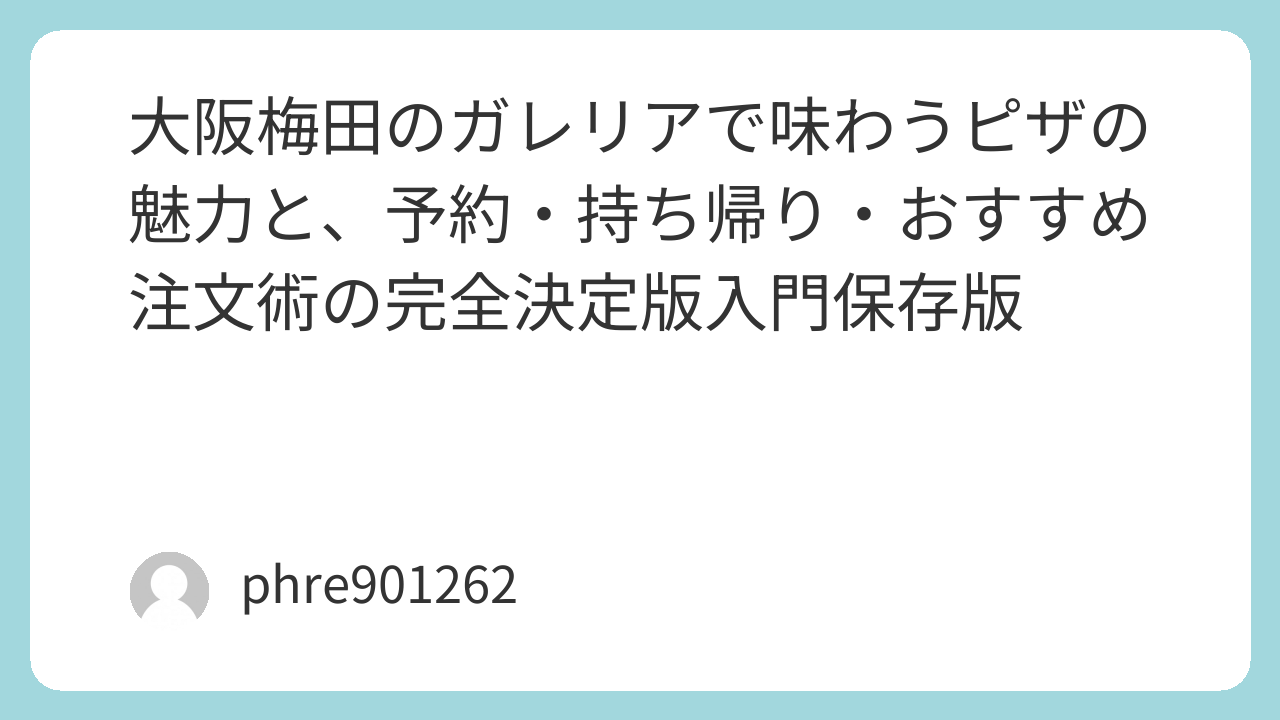 大阪梅田のガレリアで味わうピザの魅力と、予約・持ち帰り・おすすめ注文術の完全決定版入門保存版