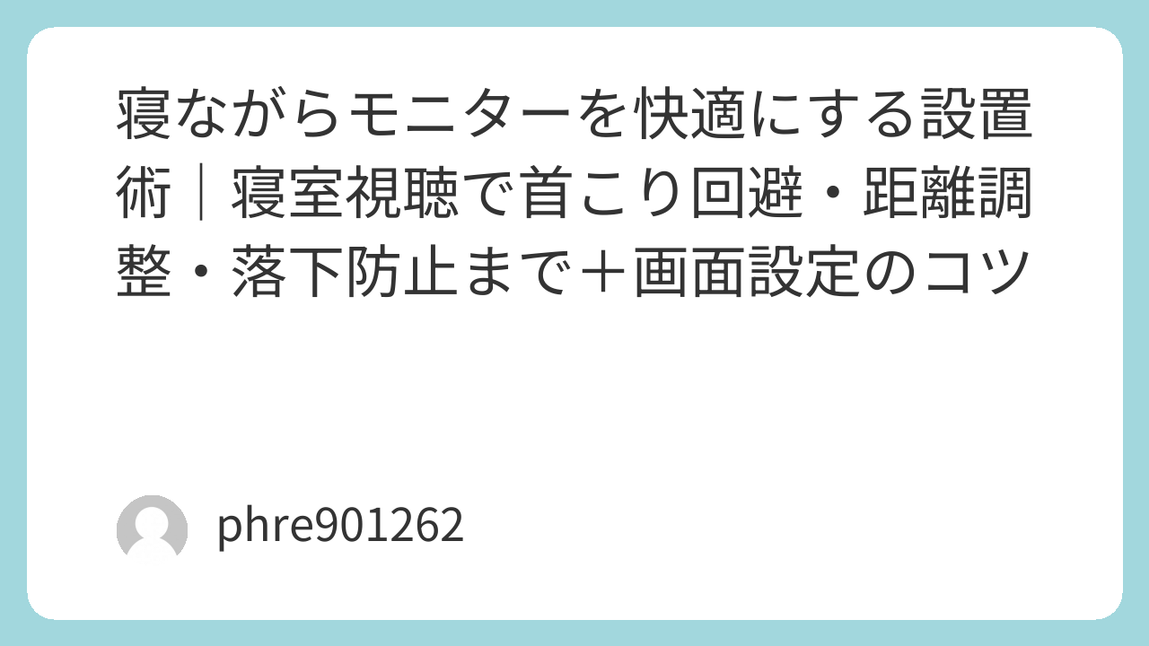寝ながらモニターを快適にする設置術|寝室視聴で首こり回避・距離調整・落下防止まで+画面設定のコツ