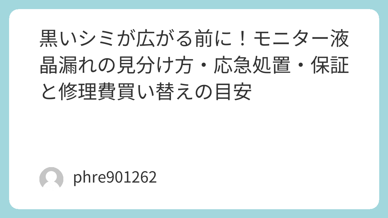 夜、いつものように作業していたら、画面の端に黒いシミみたいなものが浮いていてギョッとした。拭けば取れる汚れだと思って、つい指でこすりたくなる。ここで一回落ち着くのが大事。液晶漏れっぽい症状は、基本的に「自然に元どおり」は期待しにくいから、広げない初動を取ったほうが後悔が少ない。