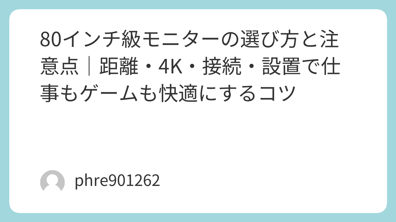 “でかい画面”は、置けた瞬間がピークになりがちだけど、距離と配線と設置が整ったときに本領を発揮する。そこまで仕上げると、仕事もゲームも一段上にいく。大画面は、正しく選ぶとちゃんと報われる。