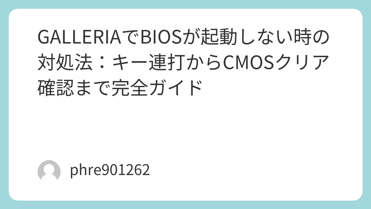 GALLERIAでBIOSが起動しないときは、(1)有線キーボード直挿しで起動直後のキー連打、(2)USB機器を外して最小構成、(3)GPU側への正しい映像出力とケーブル確認、(4)Windows側からUEFI設定へ入る、(5)必要ならCMOSクリアと電池周りの見直し、という流れで進めると失敗しにくくなります。原因の当たりを付けながら手を動かせば、無駄な出費や分解の手間を減らしつつ、復旧へ最短で近づけます。