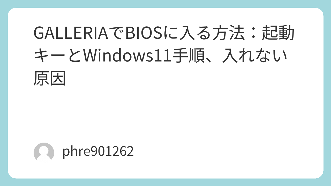 GALLERIAで「BIOSの入り方」を調べる人の多くは、設定をいじりたいというより、起動順の確認やメモリ増設後の認識チェック、セキュアブートの状態確認など、目的がはっきりしています。だからこそ必要なのは、最短でBIOS画面へ到達する手順と、うまく入れないときの切り分けです。ここでは電源投入直後の基本ルートに加え、Windows 11側から確実に入る方法、そして“入り口で詰まる原因”までまとめて解説します。
