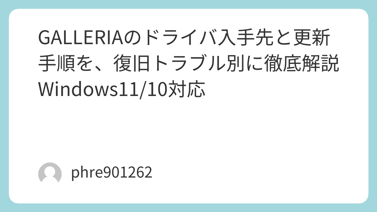 GALLERIAのドライバ探しは、型番と構成の確定から始め、まずは機種別の一式で土台を整え、ネットが戻ったら必要な範囲だけ更新へ進める流れが堅実です。持ち運びメディアとネット復旧用の小物を揃えておけば、再インストールの不安もかなり薄れていきます。