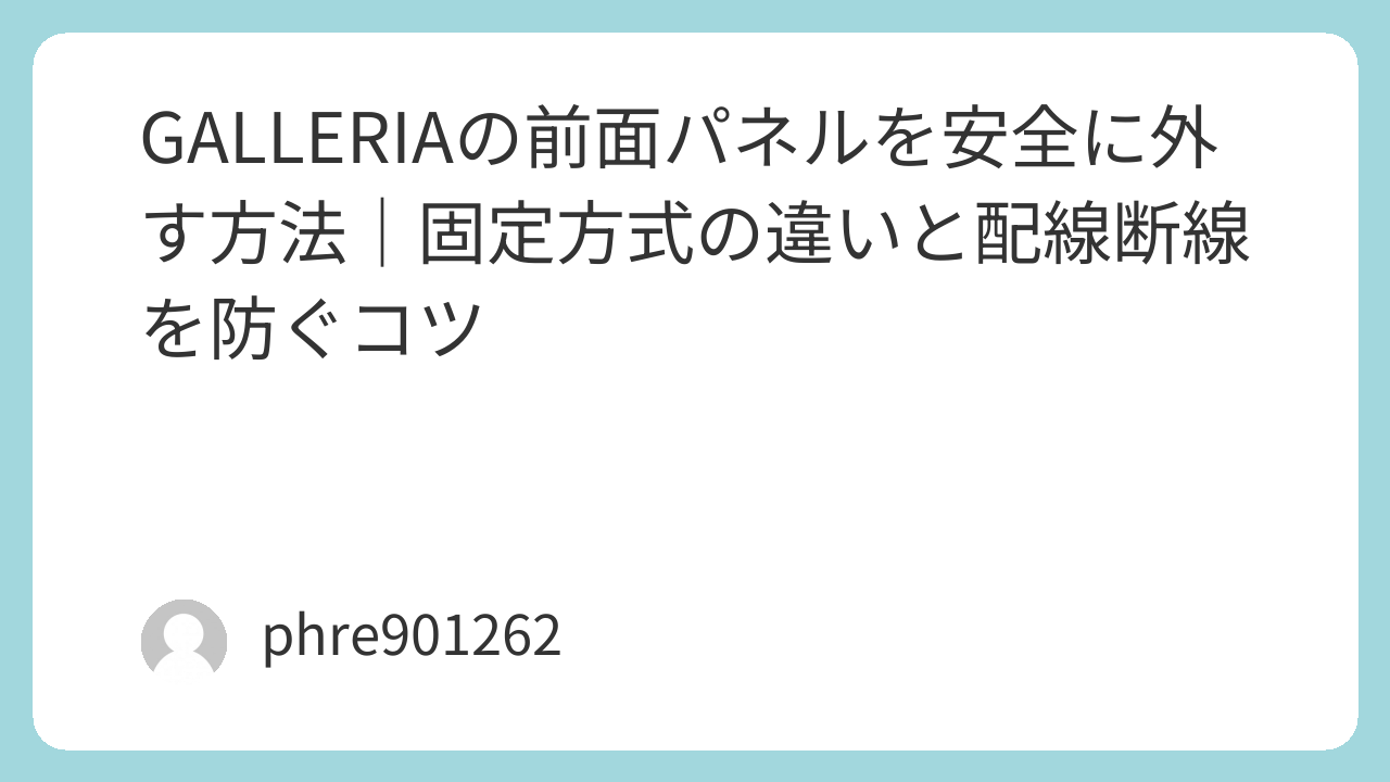 GALLERIAの前面パネル外しは、気合いではなく準備と観察で差が出ます。内側から固定方式を見極め、樹脂ツールで負担を分散し、掃除と配線整理まで一度に済ませる。これだけで、次回のメンテナンスが驚くほど楽になります。