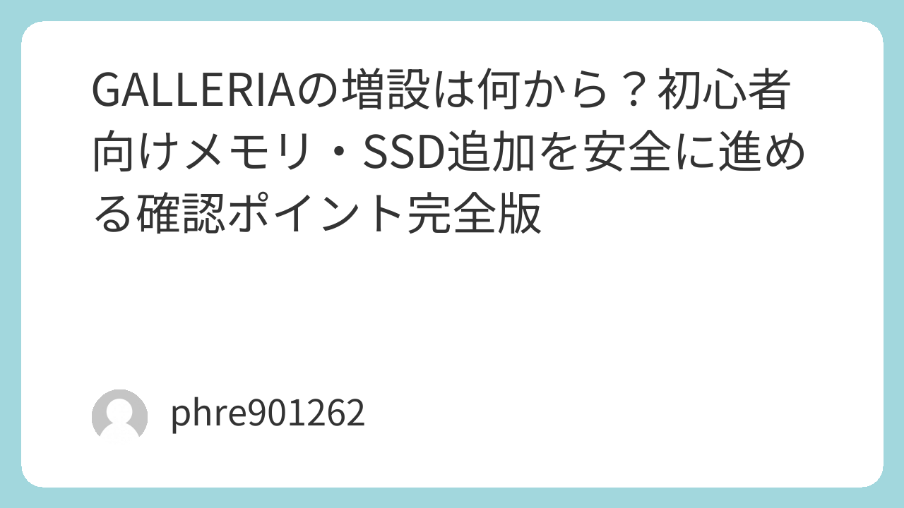 GALLERIAの増設は、派手な改造というより“快適さの底上げ”です。メモリでカクつきを減らし、SSDで待ち時間を削り、熱対策で安定性を上げる。順番と準備さえ守れば、初心者でも十分に成果を出せます。まずは自分の機種の規格と空きを確認し、無理のない一歩から始めてみてください。