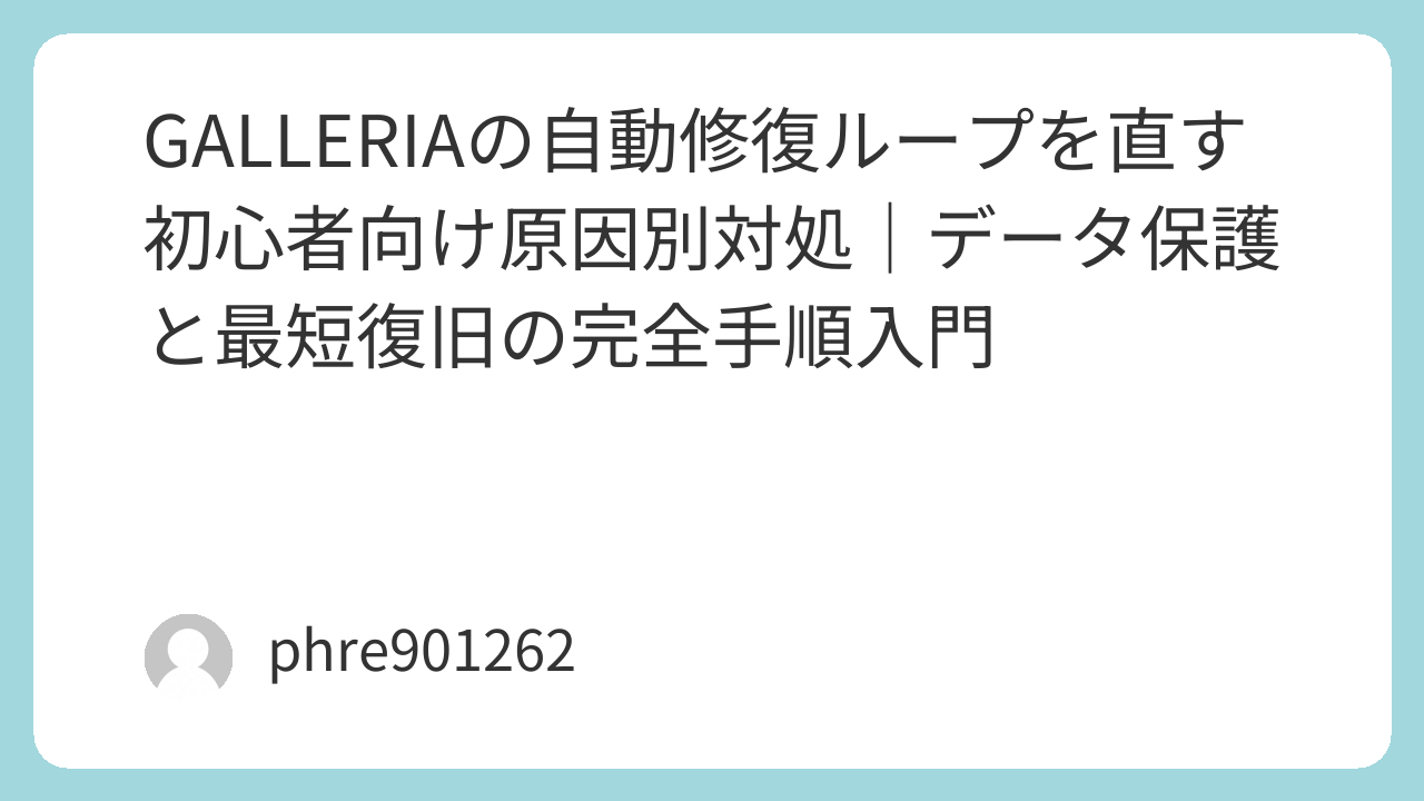 GALLERIAの自動修復ループを直す初心者向け原因別対処|データ保護と最短復旧の完全手順入門
