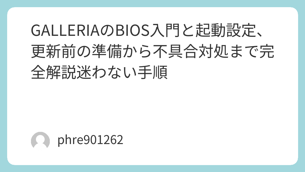 GALLERIAのBIOS作業は、起動順位の修正か、セキュリティ設定の調整か、更新のいずれかに集約されます。やることを一度に増やさず、変更は一項目ずつ、確認は再起動ごとに行う――この癖さえ身につけば、BIOSは怖い画面ではなく、状況を整えるための実用的な入口になります。