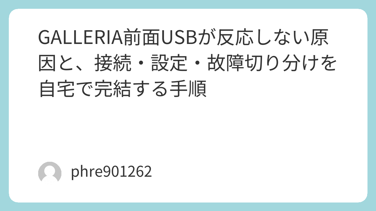 GALLERIA前面USBが反応しない原因と、接続・設定・故障切り分けを自宅で完結する手順
